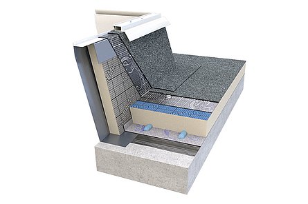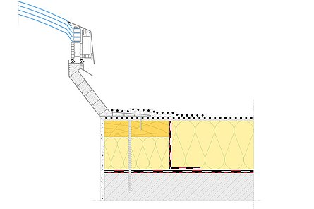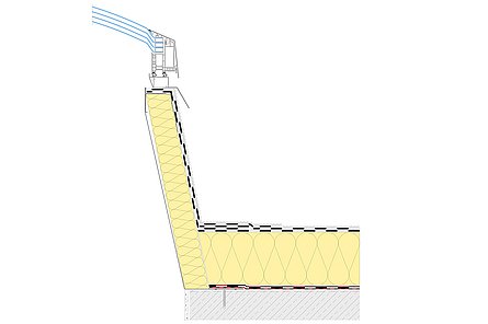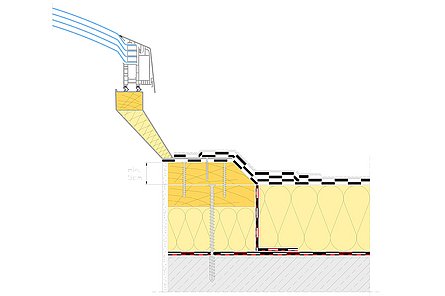 Ein Aufsetzkranz in passender Höhe birgt keines dieser Risiken – im Gegenteil. Der Einbau und der Anschluss an die Abdichtung gehen schneller und sind sicher: Wenn der Kranz auf dem Untergrund steht, wird die Dampfsperre waagerecht unter der Dämmung bis auf den Fußflansch verlegt. Das verursacht wenig Aufwände, und vor allem hat man in kürzester Zeit ein regensicheres Dach mit temporärer Behelfsabdichtung.