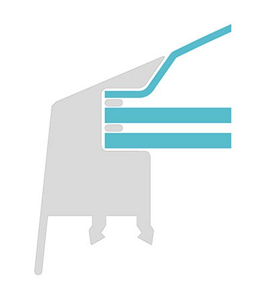 Bei Verwendung einer PVC-Dachbahn kann eine materialhomogene Verbindung am Fußflansch des Aufsetzkranzes erstellt werden. Ein Hochführen der Dachbahn kann somit entfallen.