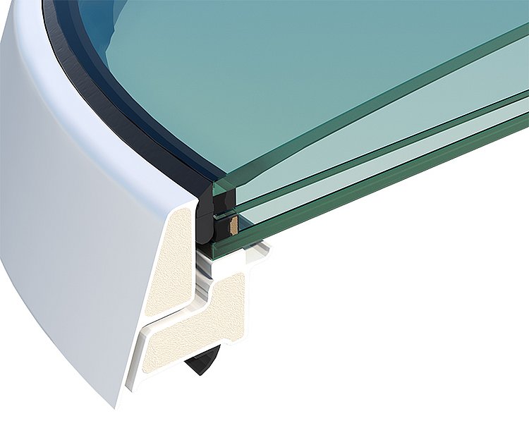 - Gewölbte Verglasung sorgt für kontinuierlichen Wasserabfluss