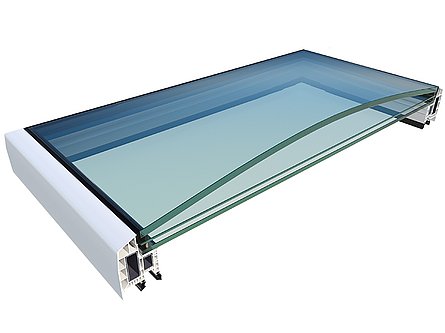 - Gewölbte Verglasung sorgt für kontinuierlichen Wasserabfluss