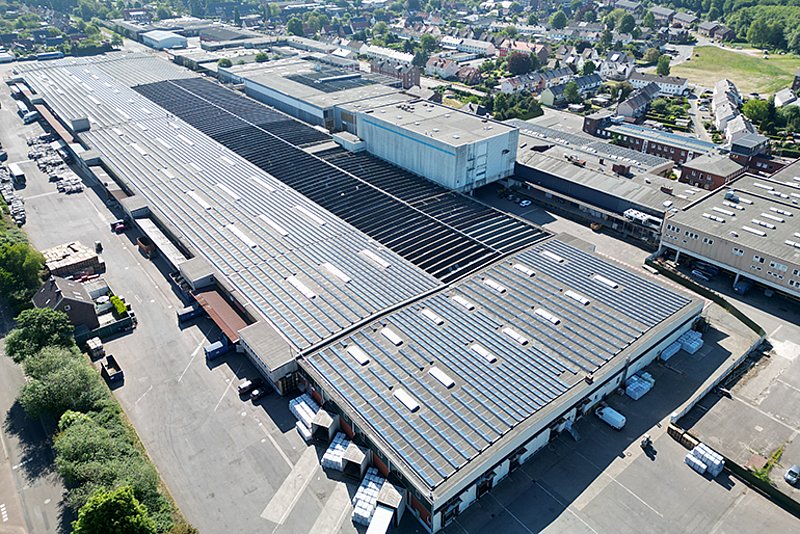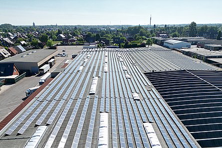 Am Standort Quakenbrück wurde im Rahmen einer umfassenden Sanierungsmaßnahme die bestehende Dachverglasung durch moderne Lichtbandsysteme mit integriertem Rauch- und Wärmeabzug (RWA) ersetzt. Insgesamt wurden 500 Meter Lichtband installiert, jeweils mit Adapterzarge und Durchsturzschutz. Diese verteilen sich auf 51 Einheiten mit 78 Einzelklappen zur Entrauchung, die in 20 Auslösegruppen organisiert sind. Alle Lichtbandklappen können zusätzlich zur täglichen Lüftung geöffnet werden.