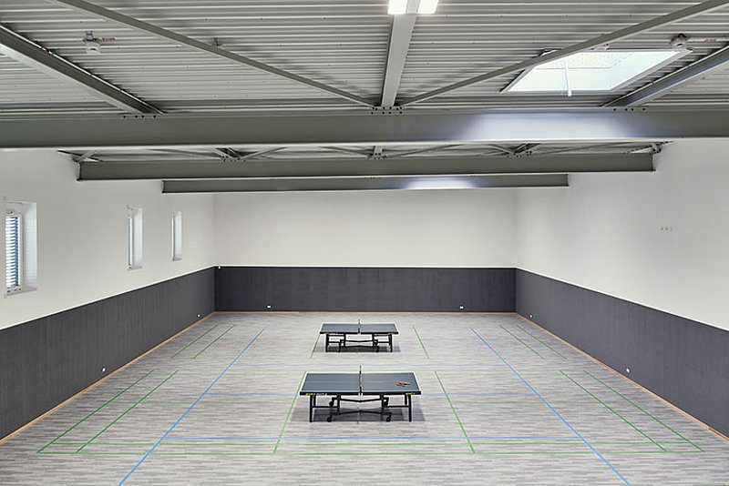 Viel Licht aber auch mehr Fläche bietet der neue Anbau der GWN Neuss: Das seit 2019 fertiggestellte Gebäude ersetzt eine Lagerhalle, die in den letzten Jahren an ihre räumlichen Kapazitäten stieß und erweitert sie darüber hinaus auch um eine Sporthalle. Für ausreichend Tageslicht in den Räumen sorgen insgesamt elf Oberlichter der ortsansässigen Firma ESSERTEC.