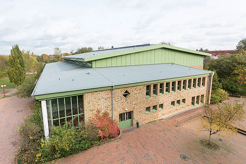 Zwischen Stralsund und Greifswald gelegen, bietet das kleine Städtchen Grimmen für sein teils großes Einzugsgebiet neben zwei Grundschulen auch zwei weiterführende Einrichtungen: die Regionalschule und das Gymnasium Grimmen. Letzteres entstand im Jahr 1993 und zählt heute 465 Schülerinnen und Schüler. Zu dem Hauptgebäude, bestehend aus vier Flügeln, in denen sich Unterrichts- und Fachräume, eine Bibliothek, Schülercafé sowie Computerräume befinden, gehört auch die 2.200 Quadratmeter große Sporthalle auf dem Grundstück. Als separates Gebäude dient sie nicht nur dem Schulsport, sondern wird auch von den ortsansässigen Vereinen und der Förderschule genutzt.