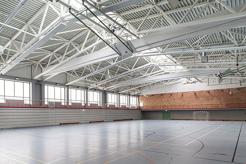 Der Sportunterricht am Anemonenweg im mecklenburgischen Grimmen kann wieder aufgenommen werden. Grund der Unterbrechung waren bauliche und bauphysikalische Mängel an der Glas-Satteldach-Konstruktion. Die im Vorfeld stattgefundenen Begehungen zeigten, dass eine Sanierung bei unverändertem Dachaufbau die wirtschaftlichste Lösung darstellt. Den hierfür notwendigen Austausch des Lichtbandes übernahm ESSERTEC.